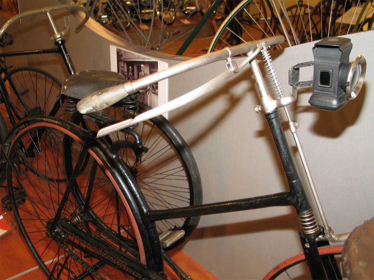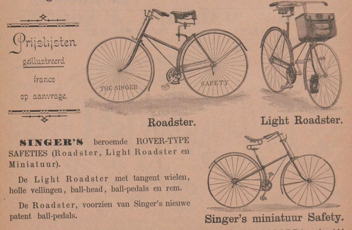 Singer must have been the first to introduce the frame that became very fashionable in 1890-1891: the semi diamond. Singer introduced it in 1887 or 1888 (I am not sure). In 1889 they introduced a model on which the strange saddle tube had developed into a real top tube, so when the semi diamond became fashionable, Singer had already stopped building them.